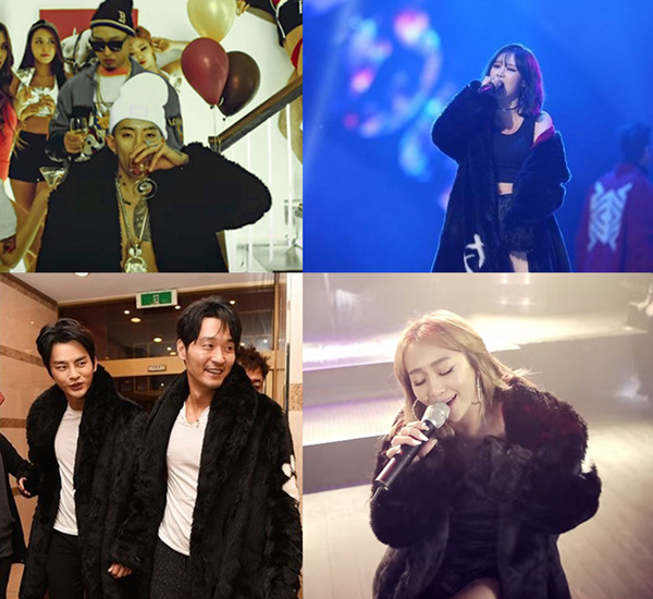 성별이 다른 스타들이 '같은 옷으로 다른 느낌'을 연출해 시선을 모았다. 언프리티 랩스타의 '예지', 힙합레이블 AOMG의 CEO인 '박재범', 연기자로 거급난 '서인국'을 비롯해 씨스타의 '효린'은 등판에 울고 있는 토끼 그림과 함께 'HATE'이란 단어가 새겨진 블랙퍼코트로 서로 다른 분위기의 연출했다.